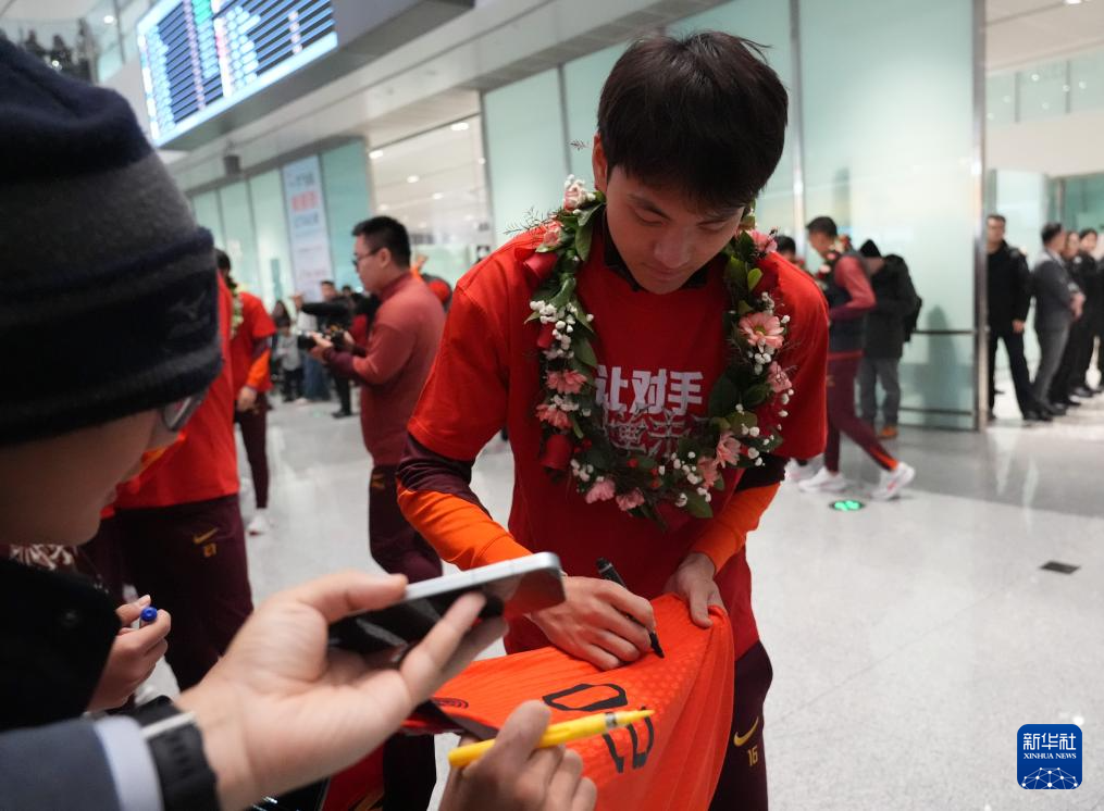 1月26日,大批球迷在機(jī)場歡迎中國隊歸來。