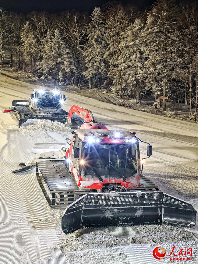 “壓完的‘面條雪’更平整、更松軟,滑起來體驗更好。”張斌解釋,如果雪道不壓,滑起來容易打滑,安全系數(shù)就會降低。