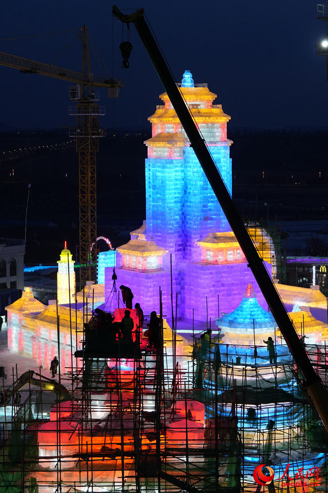 冰為磚、水為泥、燈為飾,打基礎(chǔ)、做鋼架、砌冰墻……最忙時,曲超和5500余名工人夜以繼日,在攝氏零下的氣溫中“玩冰嬉雪”,睫毛上全是凝結(jié)的霜花?!氨┦嵌虝旱乃囆g(shù),一旦進(jìn)入冰雪施工季,都得緊抓時間,盡量把施工時間壓縮到最短,這樣留給游客欣賞的時間就會更長?!鼻f。