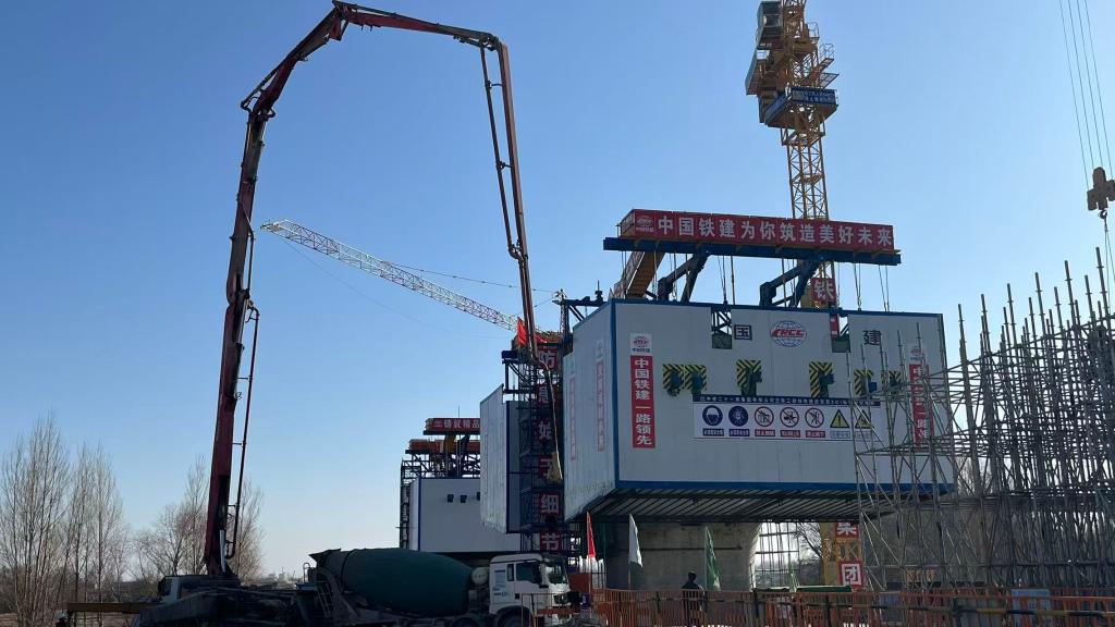 在中鐵二十一局集團有限公司所建項目處,機器轟鳴與焊花飛濺交織,鋼鐵巨臂緩緩運轉(zhuǎn),巨大的橋墩向遠(yuǎn)方延展開來。