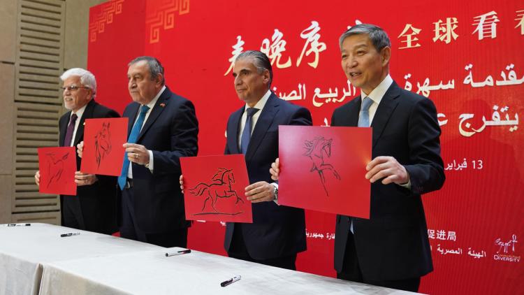 廖力強表示,感謝中央廣播電視總臺將“春晚序曲”帶來埃及,為埃及和阿拉伯朋友感知中國打開一扇窗,為中埃、中阿人民相知相近架起一座橋。自中國春節(jié)在2024年申遺成功后,世界上越來越多的國家和人民與中國人民一道,慶祝春節(jié),共享歡樂,中國年已成為世界年。中埃、中阿友誼源遠流長,中國人民和埃及、阿拉伯人民的心始終緊緊連在一起。今年是丙午馬年,中埃、中阿、中非關系迎來建交70周年。在中國傳統(tǒng)文化中,馬寓意著進取與希望。我們愿同埃方一道,以一馬當先的沖勁、馬不停蹄的干勁,推動雙邊關系朝著構建面向新時代中埃命運共同體的目標前進,為中阿、中非關系增添新動力,為維護世界和平穩(wěn)定、促進全球發(fā)展繁榮作出更大貢獻。