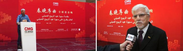 當?shù)貢r間2月13日,“春晚序曲 全球看春晚”埃及專場活動在開羅舉行。本次活動由中國中央廣播電視總臺與中國駐埃及大使館、埃及旅游和文物部、埃及旅游促進局共同主辦。中宣部副部長、中央廣播電視總臺臺長慎海雄作視頻致辭。中國駐埃及大使兼駐阿盟全權代表廖力強,埃及政府代表、埃及外交部亞洲事務部助哈姆扎,埃及前總理沙拉夫出席活動并致辭。埃及考古學家、前文物部長哈瓦斯,埃及旅游促進局主席代拉提芙,埃及外交事務委員會執(zhí)行主任伊扎特,巴德爾大學副校長巴斯歐尼,阿盟非洲事務司司長布斯坦吉,阿盟理事會秘書處主任法赫米等中埃兩國政界、學術界、媒體界代表200余名嘉賓參加活動。