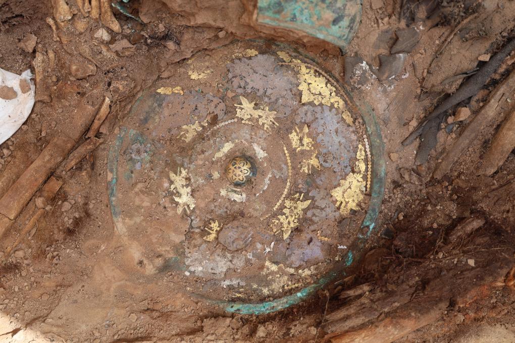 這是吐魯番市巴達(dá)木東晉唐時(shí)期墓群出土的金銀平脫花鳥(niǎo)紋銅鏡(資料照片)。新華社 發(fā)