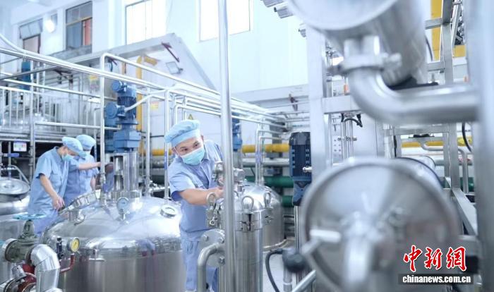 圖為海南華研膠原科技股份有限公司內(nèi),工人正在進行生產(chǎn)。 (海南華研膠原科技股份有限公司 供圖)