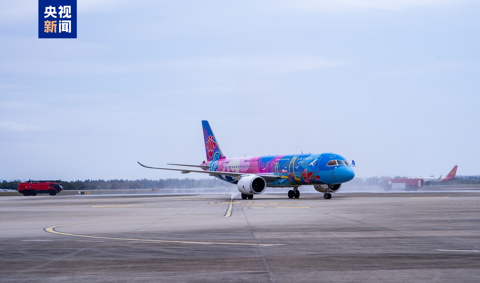 記者3月16日從南航了解到,16日上午10時44分左右,南航國產(chǎn)大飛機C919“大美灣區(qū)號”彩繪機從廣州白云國際機場起飛,正式開始執(zhí)飛廣州往返溫州新航線。