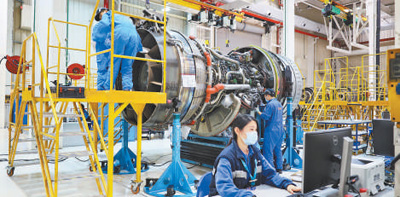 福建自貿試驗區(qū)廈門片區(qū),航空維修基地的工程師在進行發(fā)動機維修作業(yè)。
