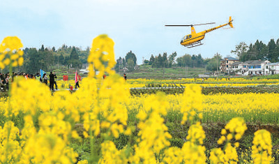 4月以來(lái),四川省崇州市的30萬(wàn)畝油菜花競(jìng)相綻放,從空中俯瞰,將會(huì)帶來(lái)不一樣的感受。為此,當(dāng)?shù)亻_(kāi)通了“低空航線”,游客在半小時(shí)的低空飛行中,不僅可以俯瞰一望無(wú)際的油菜花海,還能欣賞附近錯(cuò)落有致的民居庭院。此外,當(dāng)?shù)剡€推出花海跳傘項(xiàng)目,將極限運(yùn)動(dòng)融入賞花,帶給游客別樣的體驗(yàn)。
