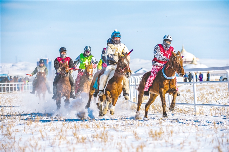 1月18日,錫林浩特市那達慕風情園內馬蹄踏雪、人聲鼎沸,“歌游內蒙古·暢享錫林浩特”——冬季那達慕暨蒙古馬超級聯(lián)賽在歡騰的歌聲中拉開序幕。開幕式上,隨著馬蹄的噠噠聲,一支雄壯的馬隊踏雪而來,騎手們身著艷麗的蒙古袍,駕馭著矯健的蒙古馬,以整齊的隊列自遠處緩緩走來。歌聲悠揚,舞姿豪邁,演員們以動人的演繹,完美詮釋了力量與藝術之美。本次賽事包含15公里耐力賽、10公里3人團體接力賽、跑馬射箭、跑馬拾哈達、6公里走馬及搏克比賽等比賽項目。賽場上,騎手們馭馬飛馳,人與馬默契配合,在銀裝素裹的雪原上縱橫馳騁。在跑馬射箭與跑馬拾哈達項目上,騎手在飛奔的馬匹上挽弓搭箭、俯身拾物,動作行云流水,精湛技藝引來觀眾陣陣驚呼與贊嘆。除了扣人心弦的比賽,本次活動還為游客打造了豐富的冰雪互動體驗。冰雪涮肉宴香氣四溢,草原篝火電音派對將熱情推向高潮,千人雪戰(zhàn)、雪地拔河等趣味項目讓游客親身參與,盡情享受冰雪樂趣?,F(xiàn)場還同步舉辦了錫林浩特“伊德喜”草原冬儲肉展銷活動,讓游客在觀賽之余,還能選購到正宗錫林郭勒牛羊肉,體驗純正的草原風味。(記者