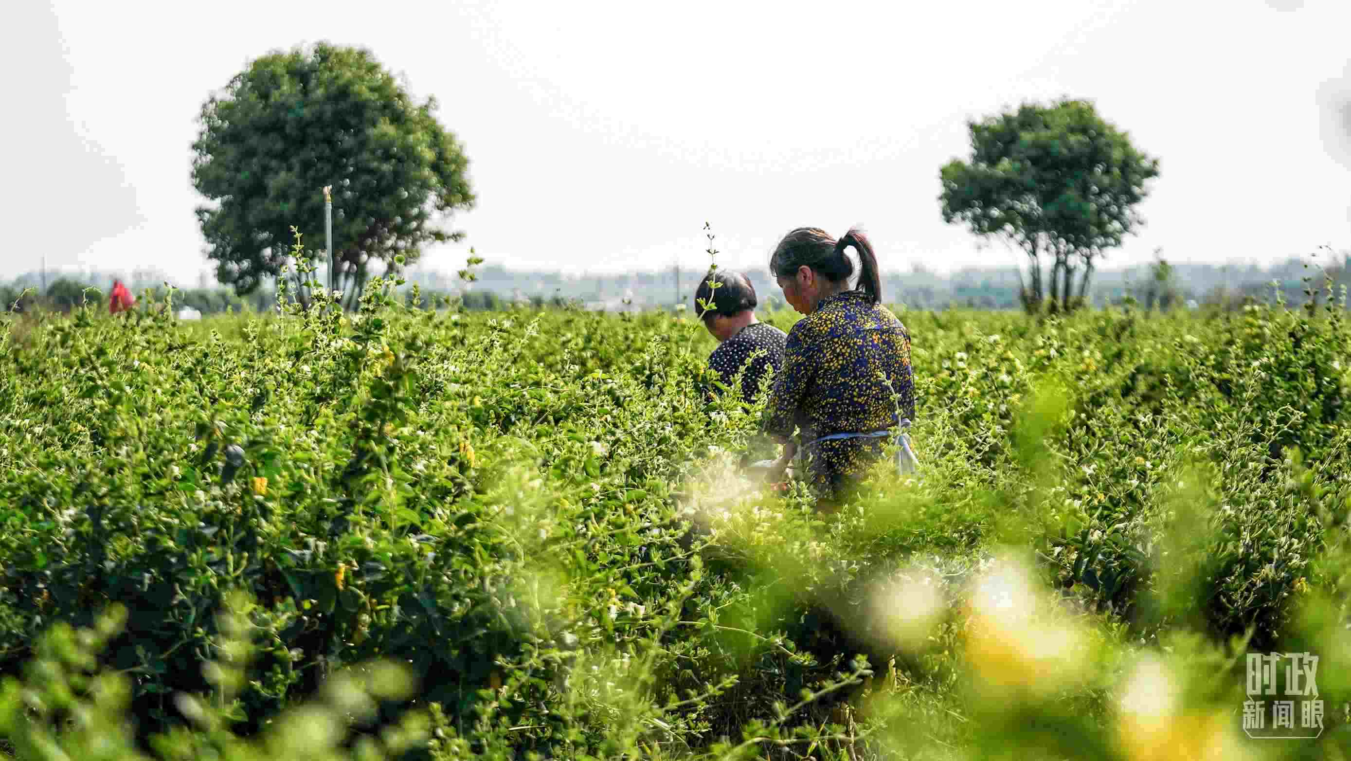 △五月,河南農民采摘金銀花。(總臺國廣記者李晉拍攝)