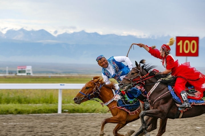 本屆運動會的表演項目具有鮮明的地域差異性和民族特色。巍峨雪山、廣袤草原,運動會馬上項目的比賽于今年7月在新疆維吾爾自治區(qū)昭蘇縣舉行。其中,“姑娘追”作為表演項目給人留下深刻印象。“姑娘追”原先是哈薩克族男女青年的一種戀愛方式,即姑娘騎馬追上心愛的青年,用皮鞭輕輕抽打他,來表達(dá)愛意?,F(xiàn)如今,在各民族文化的互鑒融通中,“姑娘追”已成為一項饒有風(fēng)趣的群眾性體育活動,不斷傳承發(fā)展。
