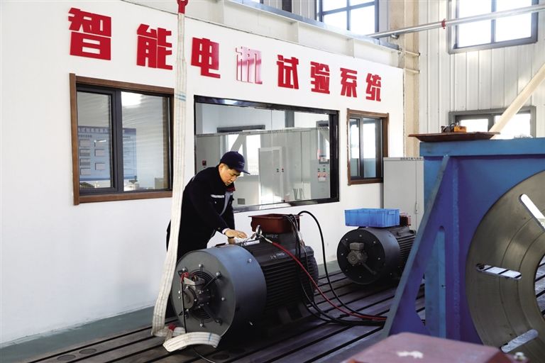 內蒙古優(yōu)普森電氣有限公司生產車間內一臺永磁電機正在進行出廠前試驗。 記者 劉向平 攝