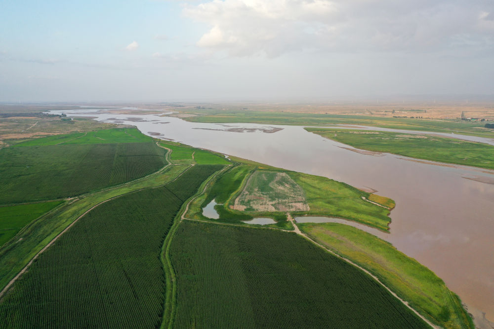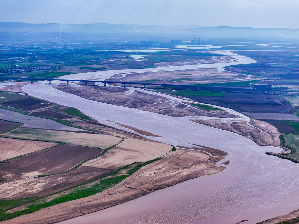 這是6月7日拍攝的黃河內(nèi)蒙古達(dá)拉特旗段景色(無人機(jī)照片)。新華社記者 連振 攝