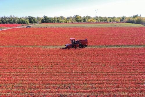 圖為開(kāi)魯縣東風(fēng)鎮(zhèn)辣椒種植基地進(jìn)行機(jī)收作業(yè)的情景。張芮嘉 攝