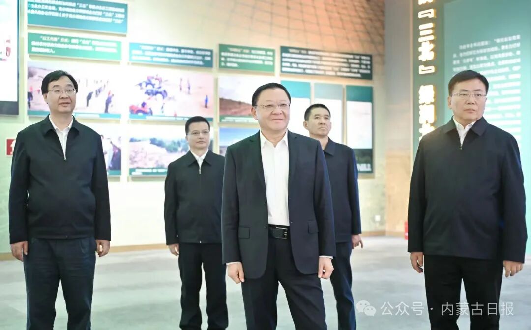 10月7日,自治區(qū)黨委書記、人大常委會黨組書記王偉中來到內(nèi)蒙古展覽館,分別參觀“牢記囑托 感恩奮進(jìn)——辦好兩件大事 奮力書寫中國式現(xiàn)代化內(nèi)蒙古新篇章”、“綠色長城 生態(tài)奇跡——內(nèi)蒙古防沙治沙和‘三北’工程攻堅戰(zhàn)”主題展。自治區(qū)黨委副書記、自治區(qū)人民政府黨組書記、呼和浩特市委書記包鋼參加。