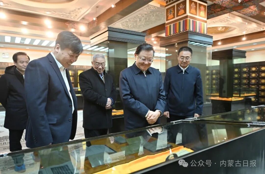 12月16日,自治區(qū)黨委書(shū)記王偉中來(lái)到圖書(shū)館、蒙古文古籍文獻(xiàn)展閱室,仔細(xì)察看館藏文獻(xiàn),詳細(xì)詢(xún)問(wèn)圖書(shū)文獻(xiàn)資源建設(shè)、研究開(kāi)發(fā)等工作。草原云·內(nèi)蒙古新聞網(wǎng)記者 馬建兵 攝