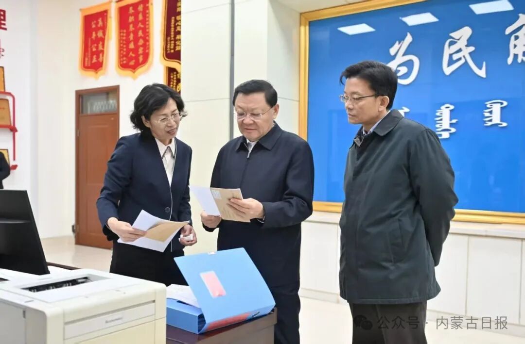 12月17日,自治區(qū)黨委書(shū)記王偉中走進(jìn)信訪接待大廳,聽(tīng)取有關(guān)工作匯報(bào),了解群眾來(lái)訪接待和群眾來(lái)信辦理情況,并與一線信訪干部深入交流。草原云·內(nèi)蒙古新聞網(wǎng)記者 馬建兵 攝