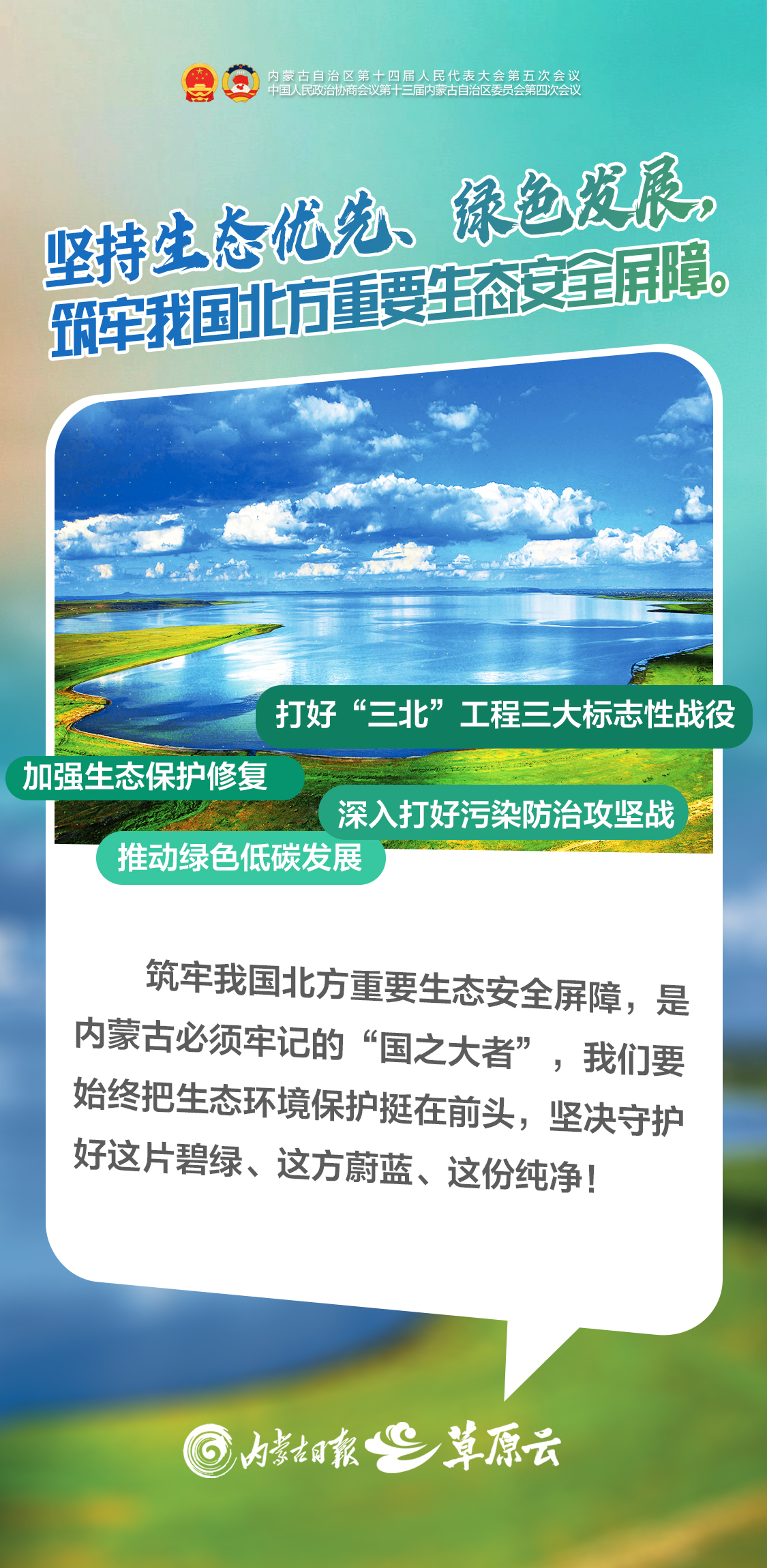 建設(shè)“兩個屏障”、“兩個基地”、“一個橋頭堡”,是習(xí)近平總書記著眼全國發(fā)展大局賦予內(nèi)蒙古的戰(zhàn)略定位和使命任務(wù),是自治區(qū)全面推進(jìn)中國式現(xiàn)代化的根本遵循。