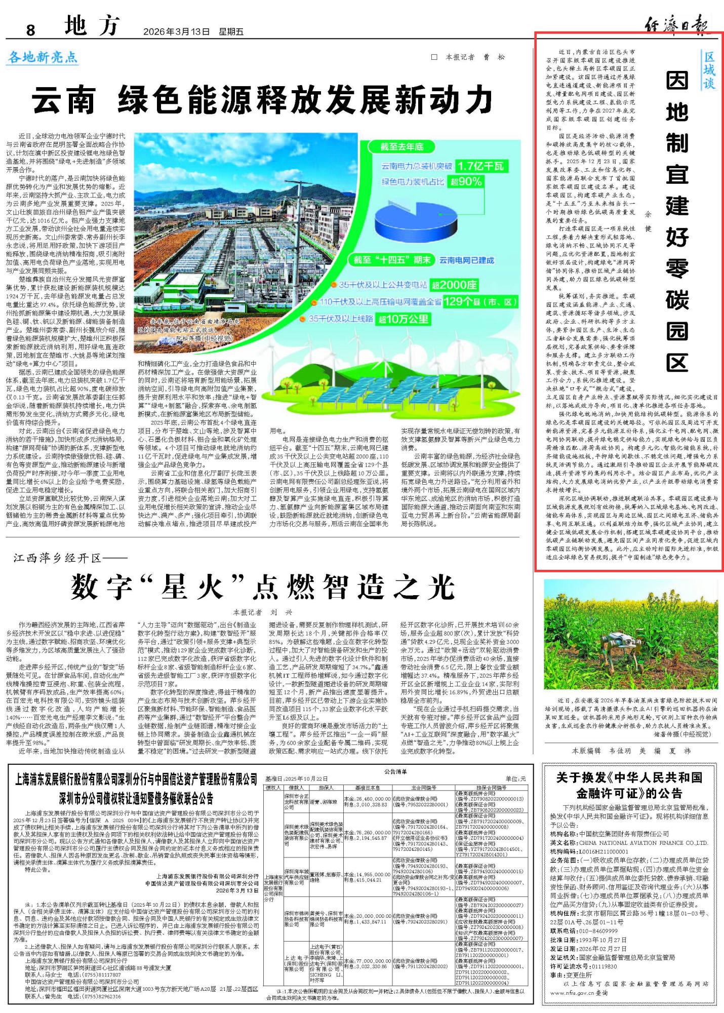 2026年3月13日《經(jīng)濟(jì)日?qǐng)?bào)》第8版刊發(fā)了《因地制宜建好零碳園區(qū)》的文章,報(bào)道了近日,包頭稀土高新區(qū)啟動(dòng)國家級(jí)零碳園區(qū)建設(shè),計(jì)劃 2027 年底完成創(chuàng)建。零碳園區(qū)是綠色低碳轉(zhuǎn)型關(guān)鍵抓手,建設(shè)需統(tǒng)籌能源、產(chǎn)業(yè)等多領(lǐng)域,解決重形式、綠電消納不暢等問題,通過優(yōu)化頂層設(shè)計(jì)、強(qiáng)化綠電就地消納、深化區(qū)域協(xié)同聯(lián)動(dòng),以務(wù)實(shí)舉措推進(jìn)落地,助力高質(zhì)量發(fā)展。