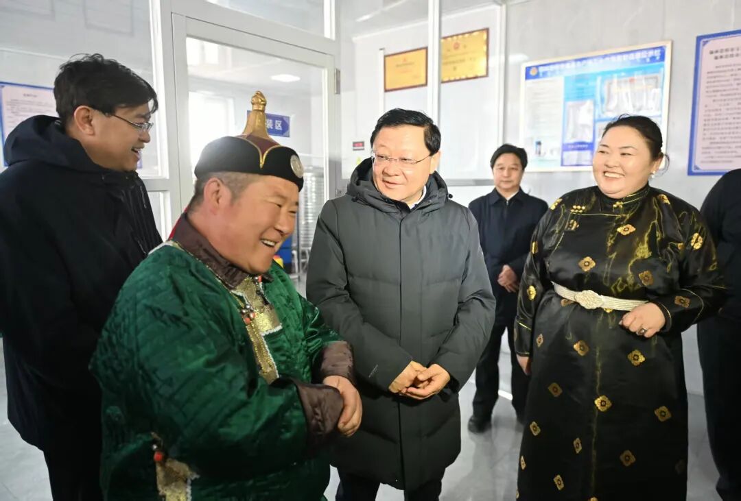 3月23日,自治區(qū)黨委書記、人大常委會(huì)主任王偉中在阿巴嘎旗伊克塞畜牧服務(wù)有限公司調(diào)研獸醫(yī)機(jī)構(gòu)社會(huì)化服務(wù)情況。草原云·內(nèi)蒙古新聞網(wǎng)記者 馬建兵 攝