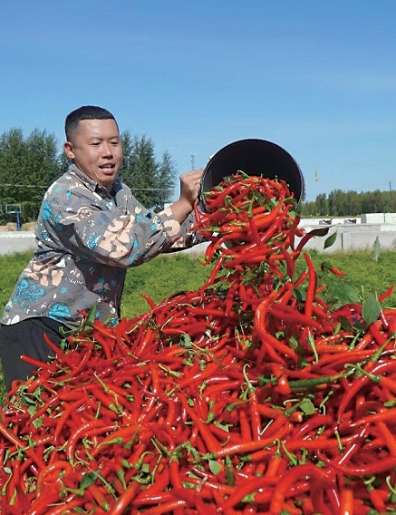巴彥淖爾蘇木聯(lián)合嘎查牽線吉林企業(yè)與農(nóng)戶簽訂紅辣椒收購協(xié)議,225戶農(nóng)戶連片種植1000畝辣椒,畝產(chǎn)達(dá)到1200斤,每戶年增收1.2萬元。秋收時節(jié),卡車直抵地頭裝袋,老鄉(xiāng)們圍坐在田埂上點收貨款,笑容里滿是豐收的喜悅。