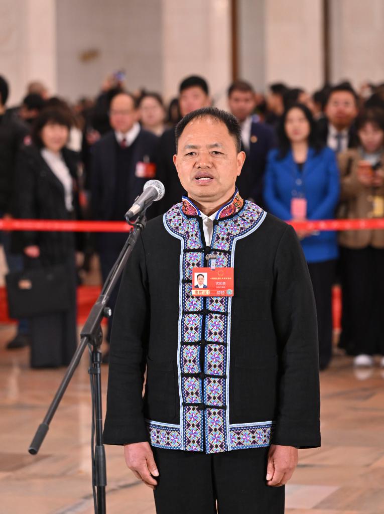 3月5日,第十四屆全國人民代表大會第四次會議首場“代表通道”集中采訪活動在北京人民大會堂舉行。這是全國人大代表農(nóng)加貴接受媒體采訪?!?/span>
